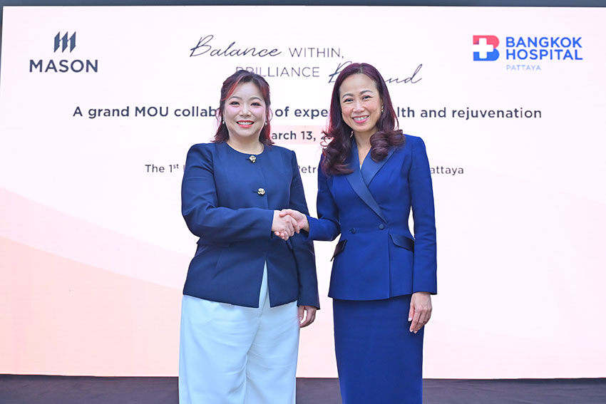 ขณะที่ พญ.ปิยาภรณ์ ทิพยะรัตน์, ผู้อำนวยการโรงพยาบาลกรุงเทพพัทยา และผู้อำนวยการโรงพยาบาลจอมเทียน กล่าวว่า “ความร่วมมือในวันนี้เกิดจากแนวคิดที่ว่า “สุขภาพดีเริ่มต้นจากการดูแลก่อนป่วย” เราจึงให้ความสำคัญกับการดูแลสุขภาพเชิงป้องกัน (Preventive Healthcare) และเวชศาสตร์ชะลอวัย (Anti-Aging & Regenerative Medicine) ซึ่งจะเป็นแนวทางในการดูแลสุขภาพที่สำคัญในอนาคต โดยในปัจจุบันประเทศไทยกำลังก้าวสู่การเป็นศูนย์กลางของ Wellness Tourism ระดับโลก จากข้อมูลของ Global Wellness Institute คาดการณ์ว่าอุตสาหกรรม Wellness จะเติบโตเฉลี่ย 12-14% ต่อปี และจะมีมูลค่าถึง 8.5 ล้านล้านเหรียญสหรัฐในปี 2027 นี้ ดังนั้นการจับมือกันกับเมสันภายใต้แคมเปญดังกล่าว จึงจะเป็นกำลังสำคัญในการผลักดันและส่งเสริมให้พัทยาเป็นจุดหมายปลายทางของการดูแลสุขภาพที่ครบวงจรสำหรับนักท่องเที่ยวคุณภาพทั้งชาวไทยและชาวต่างชาติได้อย่างแน่นอน”