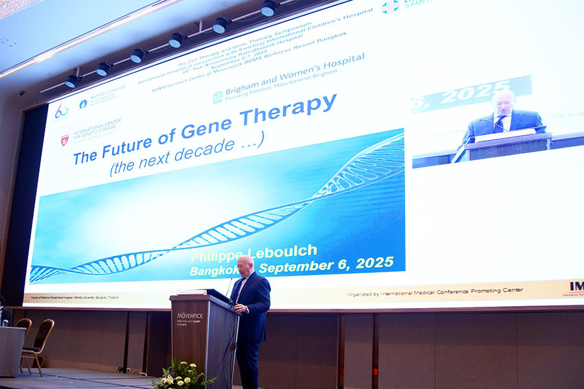 Professor Philippe Leboulch แพทย์และนักวิจัยจากมหาวิทยาลัย Paris-Saclay ประเทศฝรั่งเศส และมหาวิทยาลัยฮาร์วาร์ด ประเทศสหรัฐอเมริกา แพทย์ผู้เชี่ยวชาญและทำการศึกษาพัฒนา lentivirus เพื่อเป็นพาหะสำหรับการปรับแต่งยีนของโรคพันธุกรรมต่างๆ และเป็นหนึ่งในทีมการศึกษาวิจัยการรักษาด้วยยีนบำบัดในผู้ป่วยโรคเลือดจางธาลัสซีเมีย (Beta-Thalassemia) ได้สำเร็จ โดยจะมาร่วมบรรยายในหัวข้อ “All About the Future of Gene Therapy”