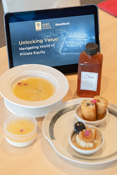 กรุงศรี ไพรเวท แบงก์กิ้ง (KRUNGSRI PRIVATE BANKING) นำโดย นางสาวกนกวรรณ ศุภนันตฤกษ์ ประธานคณะเจ้าหน้าที่ด้านเครือข่ายการขาย ธนาคารกรุงศรีอยุธยา จำกัด (มหาชน) จัดงานสัมมนา Unlocking Value: Navigating World of Private Equity สำหรับลูกค้ากรุงศรี ไพรเวท แบงก์กิ้ง พร้อมรังสรรค์ความอร่อยส่งตรงถึงลูกค้าคนพิเศษโดยเฉพาะ ภายในงานเสิร์ฟอาหารจีนสไตล์ฝรั่งเศสจากร้านดัง Cross BKK ที่สร้างปรากฎการณ์จองเต็มข้ามปี โดยเชฟไอซ์ ศิวพล ปลื้มธีรวงศ์ ทายาทรุ่นที่ 3 ของห้องอาหารจีนแต้จิ๋วเก่าแก่อย่าง 'รื่นรสภัตตาคาร' พร้อมอัปเดตการลงทุนในกองทุนกรุงศรีโกลบอลไพรเวทอิควิตี้ (KFGPE-UI) สำหรับผู้ลงทุนสถาบันและผู้ลงทุนรายใหญ่พิเศษ