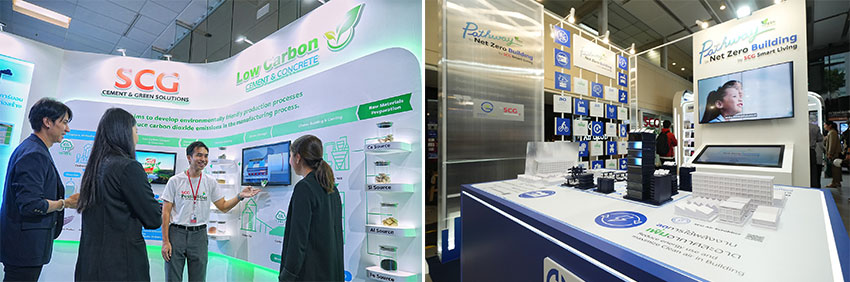 กรรมการผู้จัดการใหญ่ กล่าวต่อว่า “พลังของ ‘องค์กรแห่งโอกาส’ ทำให้เอสซีจีสร้างสรรค์หลากหลายนวัตกรรมกรีนโดนใจ โดยออกแบบกระบวนการผลิตให้ลดคาร์บอนไดออกไซด์ ควบคู่กับเพิ่มฟังก์ชันใช้งานที่ตอบโจทย์ลูกค้า สังคม สิ่งแวดล้อมยิ่งขึ้น อาทิ พลิกโฉมการก่อสร้างและอยู่อาศัยให้กรีนครบวงจร ตั้งแต่นวัตกรรมงานโครงสร้างจนถึงระบบเทคโนโลยีภายในและการตกแต่ง ก่อสร้างบ้าน อาคาร โครงการต่าง ๆ ด้วย ‘ปูนคาร์บอนต่ำและคอนกรีตคาร์บอนต่ำ’ จาก ‘เอสซีจี ซีเมนต์แอนด์กรีนโซลูชัน’ ที่เป็นมิตรต่อสิ่งแวดล้อม แข็งแรง ได้มาตรฐาน ผิวเรียบ อายุยาวนาน สามารถตอบโจทย์โครงการรักษ์โลกต่าง ๆ ได้อย่างดี ทั้งงานอาคารขนาดใหญ่ งานนิคมอุตสาหกรรม งานท่าเรือ ไปจนถึงงานใต้ทะเล พร้อมยกระดับการอยู่อาศัยให้ดียิ่งขึ้นและเป็นมิตรต่อโลก โดย ‘เอสซีจี สมาร์ทลีฟวิง’ นำเสนอ ‘วัสดุก่อสร้างครบทั้งหลัง’ ดีไซน์สวยงาม ทนทาน และลดการปล่อยคาร์บอนไดออกไซด์ ได้รับการรับรอง SCG Green Choice และฉลากคาร์บอนฟุตพริ้นท์ ทั้งยังมีเทคโนโลยีเพื่อประสิทธิภาพการใช้พลังงานครบวงจร ตั้งแต่การลดการใช้พลังงานจากระบบปรับอากาศในอาคาร ด้วย ‘SCG Air Scrubber’ และสร้างพลังงานสะอาดสำหรับใช้ภายในบ้าน-อาคารตลอด 24 ชั่วโมง ด้วย ‘SCG Solar Hybrid Solutions’ ตลอดจนโซลูชันใหม่อย่าง ‘Microgrid and Energy Storage System’ ที่ช่วยให้การบริหารจัดการใช้พลังงานมีประสิทธิภาพสูงสุด กักเก็บพลังงานทดแทนจากแสงอาทิตย์ไว้สำหรับใช้งานในช่วงต่าง ๆ ของวัน นอกจากนั้น ‘เอสซีจี เดคคอร์’ พร้อมเสิร์ฟนวัตกรรมตกแต่งพื้นผิวและสุขภัณฑ์ครบวงจร ล่าสุด เปิดตัว ‘COTTO CLAY DECOR COLLECTION’ ดูดซับความร้อนได้ดี ช่วยให้บ้านเย็น ประหยัดพลังงาน และนวัตกรรม ‘ก๊อกน้ำรุ่น GEO Series’ ที่ใช้นวัตกรรมการผลิตแบบ Non-Foundry Process ดีไซน์ก๊อกน้ำที่ใช้ท่อทองเหลืองมาเป็นส่วนหนึ่งในงานออกแบบ สามารถลดใช้พลังงานในการหลอมขึ้นรูป และลดการปล่อยก๊าซเรือนกระจกได้มากกว่าร้อยละ 10