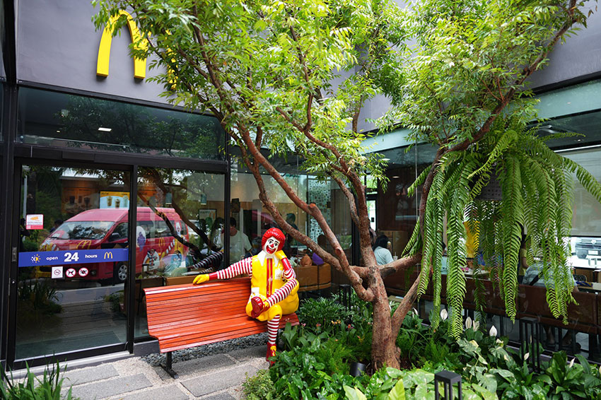 ทั้งนี้ Green Concept Store แห่งแรกในไทยของแมคโดนัลด์ ที่สาขาเลียบคลองสอง ได้ใช้ดีไซน์การตกแต่งร้านแบบ ‘Essential Ingredients 2.0’ ที่หยิบเอกลักษณ์ของวัตถุดิบหลักของแมคโดนัลด์มาใช้ในรูปแบบของศิลปะป๊อปอาร์ตที่สนุกสนาน และใช้สีโทนอุ่น (Warm Color Tone) สร้างบรรยากาศที่อบอุ่น ผ่อนคลาย และสบายตา