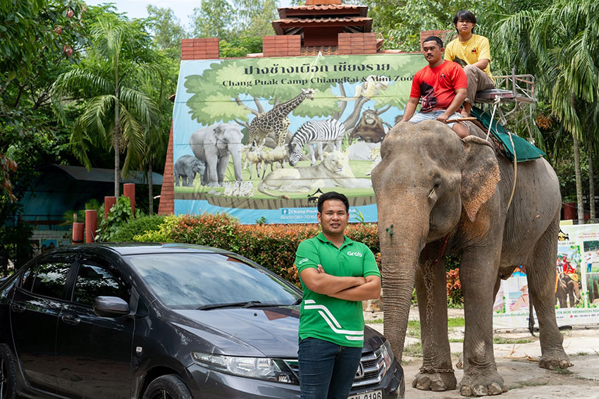 บอสเล่าต่อว่า แต่ก่อนถ้าเราไม่ใช่คนท้องถิ่นที่เชียงราย ถ้าจะเดินทางไปไหน อาจจะต้องเช่าเหมารถตู้หรือเช่ารถขับเอง ทำให้นักท่องเที่ยวอาจจะไม่นิยมมาเชียงรายเพราะข้อจำกัดในเรื่องการเดินทาง แต่พอนักท่องเที่ยวมีทางเลือกในการเดินทางมากขึ้น อย่างบริการเรียกรถของแกร็บ ทำให้พวกเขารู้สึกสะดวก และมั่นใจในความปลอดภัย ทำให้ช่วงหลังๆ เราเห็นนักท่องเที่ยวเดินทางมาเชียงรายมากขึ้น