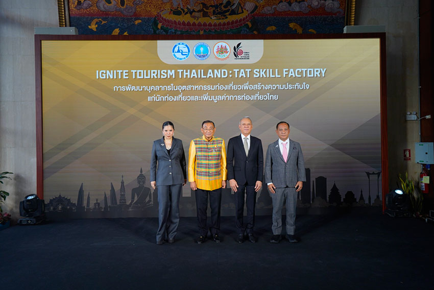 กระทรวงการท่องเที่ยวและกีฬา โดย การท่องเที่ยวแห่งประเทศไทย (ททท.) ร่วมกับกระทรวงแรงงาน และสภาอุตสาหกรรมท่องเที่ยวแห่งประเทศไทย จัดงานแถลงข่าวเปิดกิจกรรม Ignite Tourism Thailand : TAT Skill Factory ซึ่งจะจัดขึ้นในวันที่ 15 - 16 มิถุนายน 2567 ณ โรงแรมแอมบาสซาเดอร์ กรุงเทพมหานคร ภายใต้นโยบาย “IGNITE TOURISM THAILAND” มุ่งเสริมสร้างศักยภาพและทักษะต่าง ๆ แก่บุคลากรในอุตสาหกรรมท่องเที่ยวด้วยหัวใจสำคัญของการบริการที่เป็นเลิศ เพื่อสร้างความประทับใจและร่วมผลักดันประเทศไทยเป็น Tourism Hub จุดหมายปลายทางของนักท่องเที่ยวทั่วโลก โดยมีนายเสริมศักดิ์ พงษ์พานิช รัฐมนตรีว่าการกระทรวงการท่องเที่ยวและกีฬา นายพิพัฒน์ รัชกิจประการ รัฐมนตรีว่าการกระทรวงแรงงาน นายชำนาญ ศรีสวัสดิ์ ประธานสภาอุตสาหกรรมท่องเที่ยวแห่งประเทศไทย และนางสาวฐาปนีย์ เกียรติไพบูลย์ ผู้ว่าการ ททท. ให้เกียรติร่วมแถลงข่าว ณ ห้องโถงธนะรัชต์ อาคาร ททท. ซึ่งคาดว่ากิจกรรมดังกล่าวจะมีบุคลากรในอุตสาหกรรมการท่องเที่ยวในด้านต่าง ๆ เข้าร่วมงานไม่ต่ำกว่า 300 คน