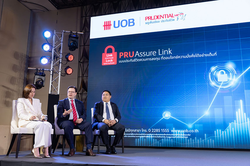 ธนาคารยูโอบี ประเทศไทย และ พรูเด็นเชียล ประเทศไทย พันธมิตรธุรกิจด้านแบงก์แอสชัวรันส์ระดับภูมิภาคอาเซียนของธนาคาร เมื่อเร็วๆนี้ เปิดตัว PRUAssure Link แผนประกันชีวิตควบการลงทุนแรกในประเทศไทย ที่มอบความคุ้มครองโดยคำนวณจากมูลค่ารับซื้อคืนหน่วยลงทุนสูงสุดตลอดอายุสัญญา เพื่อปกป้องและเพิ่มพูนความมั่งคั่งให้แก่ลูกค้า