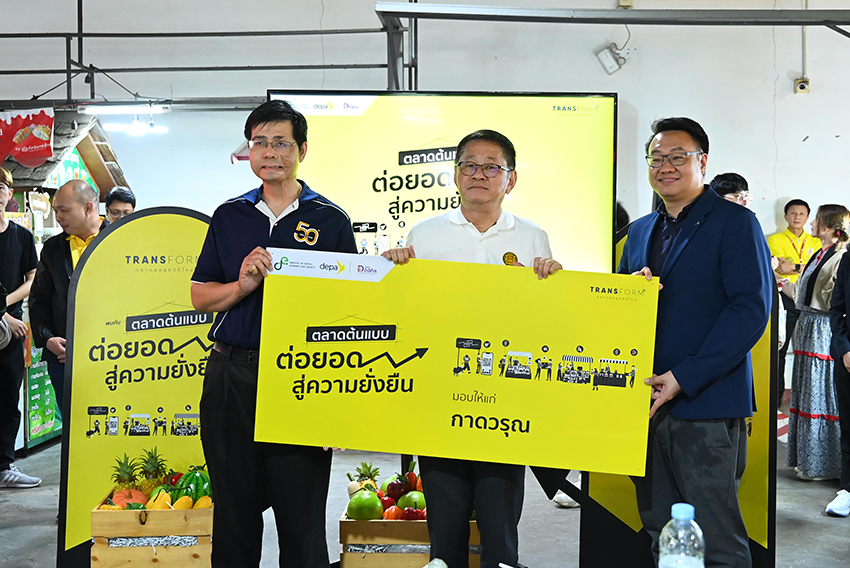 สำหรับกิจกรรม ‘ตลาดต้นแบบต่อยอดสู่ความยั่งยืน’ ภายใต้โครงการ Transform ตลาดสดยุควิถีใหม่ (ขยายผล) เป็นการติดตามและประเมินผลการส่งเสริมการประยุกต์ใช้เทคโนโลยีดิจิทัลจากดิจิทัลสตาร์ทอัพไทยแก่ผู้ประกอบการตลาด ผู้ประกอบ SMEs และผู้ประกอบการรายย่อย พ่อค้าแม่ค้า หาบเร่ แผงลอยผ่านบัญชีบริการดิจิทัล ควบคู่กับการลงพื้นสร้างความตระหนักรู้เกี่ยวกับการประยุกต์ใช้เทคโนโลยีเพื่อยกระดับการบริหารจัดการธุรกิจ สร้างช่องทางการเข้าถึงผู้บริโภค เพิ่มรายได้และลดรายจ่ายจากการนำเทคโนโลยีมาใช้เพิ่มประสิทธิภาพการดำเนินธุรกิจในยุคดิจิทัล โดยโครงการ Transform ตลาดสดยุควิถีใหม่ และโครงการ Transform ตลาดสดยุควิถีใหม่ (ขยายผล) ดำเนินการใน 75 ตลาด 25 จังหวัด รวมกว่า 100,000 แผงค้า