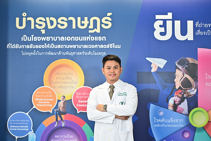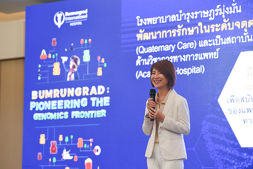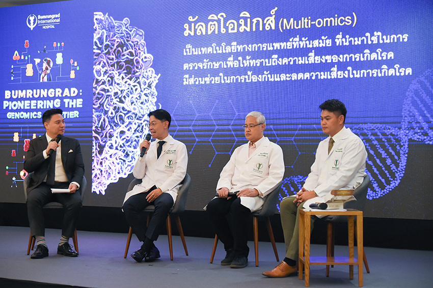 ผศ.นพ. พลกฤต ทีฆคีรีกุล กล่าวปิดท้ายว่า โรงพยาบาลบำรุงราษฎร์เป็นผู้นำในการนำเทคโนโลยีและความรู้ด้านพันธุกรรมมาใช้ในการวินิจฉัย ร่วมกับการรักษา ป้องกันโรค และดูแลสุขภาพองค์รวม นอกเหนือจากเรื่องเวชศาสตร์จีโนมแล้ว เรายังนำความรู้เรื่องมัลติโอมิกส์ (Multi-omics) ซึ่งเป็นเทคโนโลยีทางการแพทย์ที่ทันสมัย มาใช้ในการตรวจรักษา โดยช่วยให้ทราบถึงความเสี่ยงของการเกิดโรคจากการถ่ายทอดทางพันธุกรรมที่ไม่สามารถแก้ไขหรือเปลี่ยนแปลงได้ รวมถึงการใช้ประโยชน์จาก AI ในการแปรผลยีนเพื่อให้มีความแม่นยำมากขึ้น โดยมีเป้าหมายเพื่อการดูแลสุขภาพเฉพาะบุคคลอย่างมีประสิทธิภาพ ซึ่งเป็นการต่อยอดความรู้ด้านจีโนมิกส์ สู่การพัฒนาด้านเวชศาสตร์เชิงป้องกัน เพื่อส่งเสริมการมีสุขภาพที่ดีอย่างยืนยาวและยกระดับคุณภาพชีวิตที่ดีขึ้นของผู้คนอย่างยั่งยืน
