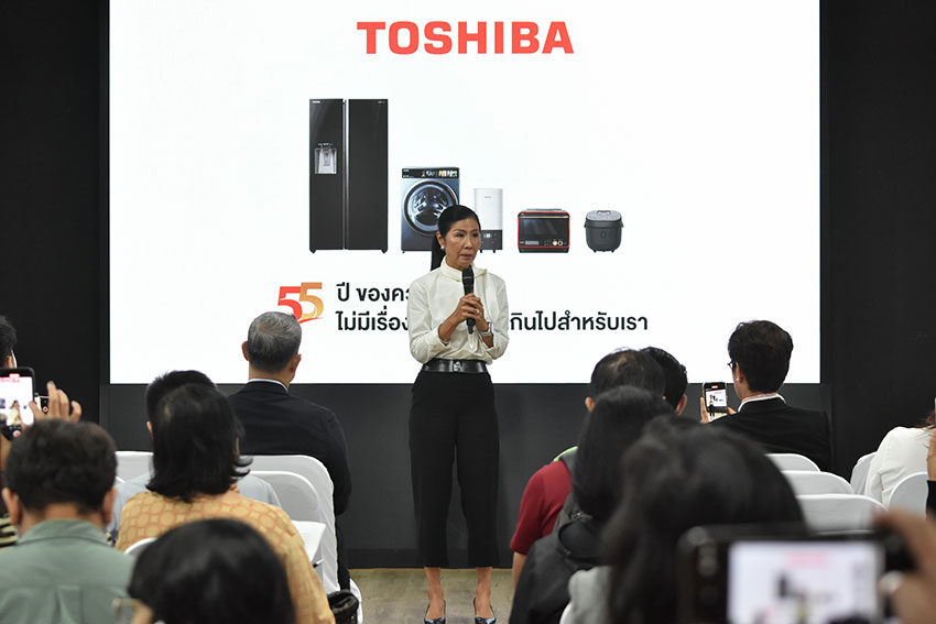 นางกอบกาญจน์ วัฒนวรางกูร ประธานกรรมการบริหาร บริษัท โตชิบา ไทยแลนด์ จำกัด กล่าวว่า ว่า “ปี 2567 นี้ โตชิบา ไทยแลนด์ ครบรอบ 55 ปี ซึ่งตลอดเวลาที่ผ่านมา บริษัทฯ ให้ความสำคัญที่สุดในเรื่องการจัดหาและนำเสนอผลิตภัณฑ์และนวัตกรรมมาตรฐานประเทศญี่ปุ่นในราคาที่จับต้องได้ เพื่อตอบโจทย์ทุกความต้องการของผู้บริโภค รวมถึงพิถีพิถันในเรื่องบริการหลังการขายที่ดี เพื่อให้ลูกค้ามั่นใจและได้รับความสะดวกสบายที่สุด และจากกลยุทธ์การตลาดดังกล่าว ส่งผลให้โตชิบา ไทยแลนด์ เติบโตอย่างต่อเนื่องและมั่นคงตลอดมา ไม่ว่าสถานการณ์เศรษฐกิจจะเป็นอย่างไร นอกจากนี้ ยังส่งเสริมการเติบโตของคู่ค้าและดีลเลอร์ให้เติบโตไปด้วยกัน ด้วยการจัดอบรมเสริมศักยภาพการแข่งขันให้กับผู้ประกอบการ และทายาทร้านเครื่องใช้ไฟฟ้าท้องถิ่นทั่วประเทศอย่างต่อเนื่อง โตชิบา ไทยแลนด์ ต้องขอขอบคุณสังคมไทย ลูกค้า พาร์ทเนอร์ตัวแทนจำหน่าย และพนักงานทุกคน ที่ให้ความไว้วางใจในบริษัทฯ และแบรนด์ ‘TOSHIBA’ มาโดยตลอด บริษัทฯ จะยังคงมุ่งมั่นที่จะ ‘นำสิ่งที่ดีสู่ชีวิต’ ซึ่งประกอบด้วยคุณค่าทุกประการที่คนไทยคู่ควรจะได้รับจากบริษัทเทคโนโลยีชั้นนำของโลก ทั้งความสะดวกสบายยิ่งขึ้น จากนวัตกรรมอันทันสมัย อย่าง IOT ความยั่งยืนและเป็นมิตรต่อสิ่งแวดล้อม ความปลอดภัยและเสริมสร้างสุขภาพที่ดี ไปจนถึงความประหยัดและความคุ้มค่าในการเป็นเจ้าของ นอกจากนี้ บริษัทฯ ยังจะสร้างสรรค์โอกาสพิเศษต่าง ๆ เพื่อตอบแทนความไว้วางใจของลูกค้า ผ่านแคมเปญและโปรโมชันใหญ่ที่จะมีตามมาอย่างต่อเนื่อง”