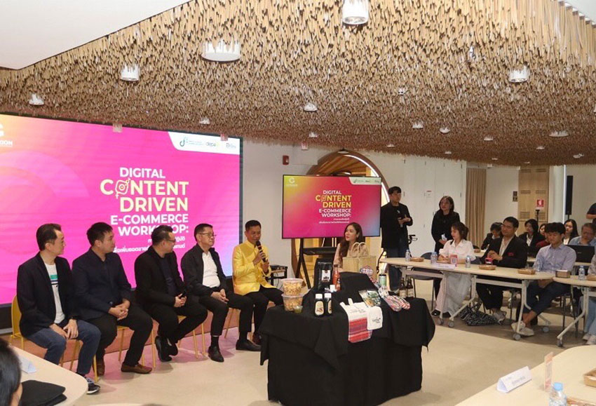 พร้อมกันนี้ คณะได้เยี่ยมชมกิจกรรม ‘Digital Content-Driven E-Commerce Workshop: การอบรมเชิงปฏิบัติการเพื่อเพิ่มยอดขายด้วยดิจิทัลคอนเทนต์’ พื้นที่ภาคตะวันออกเฉียงเหนือ กิจกรรมต่อยอดความสำเร็จของโครงการ CONNEXION ที่มุ่งพัฒนาศักยภาพและสร้างความเข้าใจในการใช้ดิจิทัลคอนเทนต์เพื่อสร้างยอดขายบนแพลตฟอร์มอีคอมเมิร์ซอย่างมีประสิทธิภาพให้กับผู้ประกอบการที่จำหน่ายสินค้าและให้บริการในจังหวัดขอนแก่นและพื้นที่ใกล้เคียงผ่านการอบรมเชิงปฏิบัติการหัวข้อต่าง ๆ ไม่ว่าจะเป็นเทคนิคการถ่ายภาพสินค้า การสร้าง Storytelling การ Live ขายสินค้า การเปิดร้านค้าใน Social Commerce อย่าง TikTok และ Facebook การใช้ข้อมูลวิเคราะห์ช่องทางขายสินค้าออนไลน์ด้วยแพลตฟอร์ม eTailligence และการสร้าง Micro Influencer หน้าใหม่ให้กับท้องถิ่น