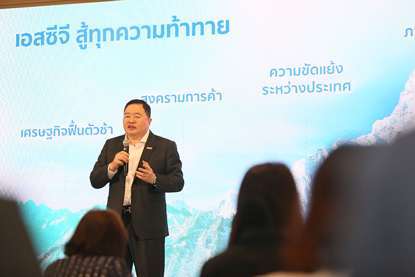 นายธรรมศักดิ์ เศรษฐอุดม กรรมการผู้จัดการใหญ่ เอสซีจี กล่าวว่า เมื่อมองสถานการณ์โลกปัจจุบันและทิศทางอนาคต ในระยะ 2-5 ปี จะมีความผันผวนมากขึ้น ทั้งความท้าทายจากเศรษฐกิจและการค้าโลกที่อาจฟื้นตัวช้ากว่าที่คาด ปัจจัยเสี่ยงด้านภูมิรัฐศาสตร์ พร้อมทั้งกฎเกณฑ์และโอกาสใหม่ ๆ จากเทรนด์รักษ์โลก ทุกธุรกิจของเอสซีจีจึงเดินหน้าปรับกลยุทธ์ ให้สอดคล้องกับสถานการณ์ พร้อมลดคาร์บอนไดออกไซด์ ตามแนวทาง Inclusive Green Growth เพื่อสร้างความสามารถการแข่งขันระยะยาว