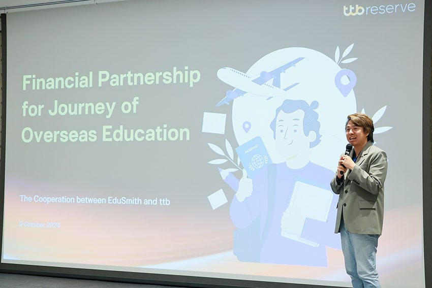ttb reserve จับมือ สถาบันวางแผนการศึกษาต่อต่างประเทศ EduSmith จัดสัมมนาพิเศษ ttb reserve Overseas Education Preparation วางแผนการไปศึกษาต่อต่างประเทศสำหรับบุตรหลาน พร้อมโซลูชันการเงินเพื่อต่อยอดความคุ้มค่าและรับผลตอบแทนที่มากกว่า สำหรับ ลูกค้า ttb reserve (ทีทีบี รีเซิร์ฟ) มอบโปรโมชันพิเศษรับส่วนลด 7% เมื่อเข้ารับบริการโปรแกรมสมัครศึกษาต่อ หรือคอร์สเรียนกลุ่ม/เดี่ยวกับ EduSmith ตั้งแต่วันนี้ถึง 30 พฤศจิกายน 2567