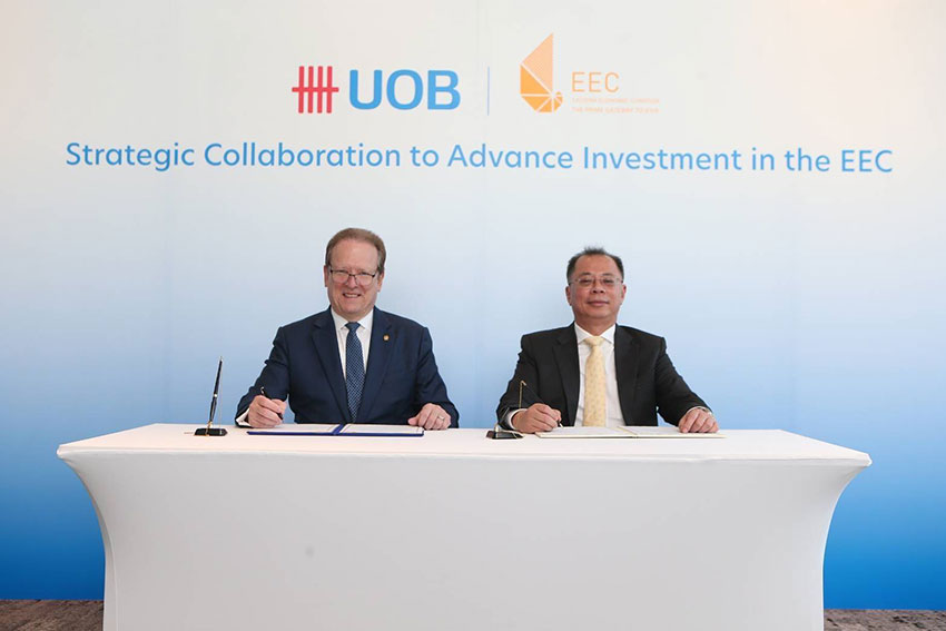 ธนาคารยูโอบี ประเทศไทย ลงนามในบันทึกความเข้าใจกับ สำนักงานคณะกรรมการนโยบายเขตพัฒนาพิเศษภาคตะวันออก (สกพอ.) เพื่อสนับสนุนการลงทุนในเขตพัฒนาเศรษฐกิจสำคัญของประเทศ และเสริมสถานะให้ประเทศไทยยังคงเป็นจุดหมายปลายทางชั้นนำสำหรับนักลงทุนต่างชาติ พร้อมช่วยสนับสนุนการเติบโตทางเศรษฐกิจในระยะยาวของประเทศ ผ่านเครือข่ายธนาคารยูโอบี ที่ครอบคลุมทั่วทั้งภูมิภาคอาเซียน