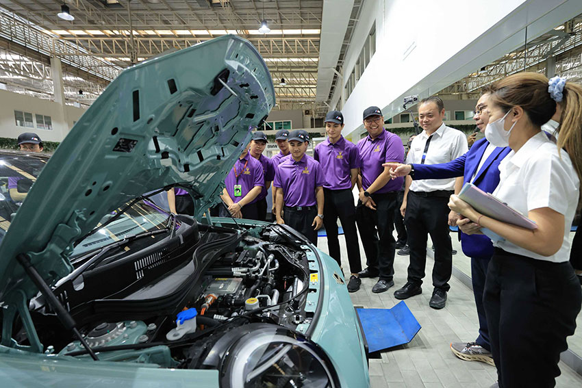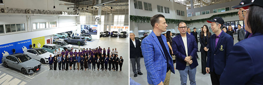บีเอ็มดับเบิลยู กรุ๊ป ประเทศไทย เดินหน้าสานต่อกิจกรรมเพื่อสังคมอย่างต่อเนื่อง ส่งเสริมทักษะและการศึกษาของเยาวชนไทย โดยร่วมสนับสนุนการบ่มเพาะบุคลากรในตลาดแรงงานวิชาชีพบริการยานยนต์ของประเทศไทย พัฒนาทักษะช่างซ่อมระบบเครื่องยานยนต์สันดาป ในการก้าวสู่การซ่อมระบบยานยนต์ที่ขับเคลื่อนด้วยไฟฟ้าเพื่อรองรับกับเทรนด์ตลาดแรงงานในอนาคต นำบุคลากรของคณะเทคโนโลยีอุตสาหกรรม สถาบันเทคโนโลยีจิตรลดา เข้าเยี่ยมชมศูนย์บริการบีเอ็มดับเบิลยู เยอรมัน ออโต้ บางนา เพื่อเรียนรู้การปฏิบัติงานด้านการซ่อมบำรุงรถยนต์ไฟฟ้า ตามมาตรฐานความปลอดภัยของบีเอ็มดับเบิลยู พร้อมกันนี้ บีเอ็มดับเบิลยู กรุ๊ป ประเทศไทย ยังได้สานต่อโครงการ CHOICEISYOURS 2024 นำทีมนักศึกษาผู้ชนะในโครงการการประกวดแนวคิดด้านความยั่งยืน จัดแสดงผลงานที่ได้รับรางวัล ภายในงานชัยพัฒนาแฟร์ สัญจร นครนายก เมื่อเร็ว ๆ นี้