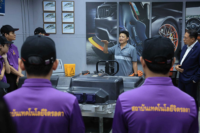 ทั้งนี้ คณะเทคโนโลยีอุตสาหกรรม สถาบันเทคโนโลยีจิตรลดา ได้นำคณะนักศึกษาในโครงการฝึกอบรมผู้ปฏิบัติงาน เรื่อง “มาตรฐานและความปลอดภัยของยานยนต์ไฟฟ้าที่มีระบบไฟฟ้าแรงดันสูง (Non-Degree)” เข้าศึกษาดูงานและอบรมเชิงปฏิบัติการเรื่อง "มาตรฐานและความปลอดภัยในการซ่อมบำรุงยานยนต์ไฟฟ้าตามมาตรฐานเยอรมัน" ณ โชว์รูมและศูนย์บริการบีเอ็มดับเบิลยู เยอรมัน ออโต้ บางนา โดยบีเอ็มดับเบิลยู กรุ๊ป แมนูแฟคเจอริ่ง ประเทศไทย และสถาบันเทคโนโลยีจิตรลดา มีความร่วมมือภายใต้โครงการพัฒนาบุคลากรด้านยานยนต์ BMW Dual Excellence Program มาตั้งแต่ปี พ.ศ. 2558 เพื่อพัฒนาปูรากฐานทักษะวิศวกรรมเมคคาทรอนิกส์ (Mechatronics) มุ่งสานต่อการพัฒนาศักยภาพอาชีวศึกษาไทยทั้งเชิงทฤษฎีและเชิงปฏิบัติให้แข็งแกร่ง เพื่อยกระดับความสามารถของบุคลากรด้านยานยนต์ไปสู่ระดับสากล รวมทั้งมุ่งเตรียมกำลังคนในตลาดแรงงานวิชาชีพบริการยานยนต์ ซึ่งครอบคลุมในด้านเทคโนโลยีรถยนต์แบบน้ำมัน (ICE) รถยนต์พลังงานไฟฟ้า 100% และแบตเตอรี่แบบ High Voltage Battery ในช่วงเปลี่ยนผ่านจากช่างซ่อมระบบเครื่องยนต์สันดาปไปสู่ระบบขับเคลื่อนด้วยไฟฟ้า