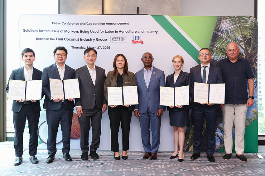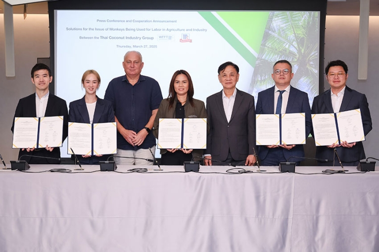 กลุ่มอุตสาหกรรมมะพร้าวไทย ร่วมกับมูลนิธิเพื่อนสัตว์ป่า ลงนามบันทึกข้อตกลงความร่วมมือ (MOU) เพื่อยกระดับสวัสดิภาพลิงที่อาจถูกใช้แรงงานในอุตสาหกรรมมะพร้าวของไทยเป็นครั้งแรก นำร่องด้วยโครงการร่วมกันดูแลลิงที่ถูกใช้แรงงานในภาคเกษตรกรรมและอุตสาหกรรม ก่อนมุ่งขยายสู่ความร่วมมือกับหน่วยงานภาครัฐที่เกี่ยวข้อง เพื่อผลักดันการออกกฎหมายห้ามใช้ลิงเก็บมะพร้าว รวมถึงการบังคับใช้อย่างจริงจัง พร้อมทั้งส่งเสริมวิทยาการในการเก็บเกี่ยวผลผลิตและการปลูกมะพร้าวพันธุ์ลูกผสมและต้นเตี้ยอย่างเป็นรูปธรรม ด้วยเป้าหมายสำคัญคือสร้างความเปลี่ยนแปลงเชิงบวกอย่างยั่งยืนในอุตสาหกรรม และแก้ไขภาพลักษณ์ของอุตสาหกรรมมะพร้าวไทยในสายตาประชาคมโลก