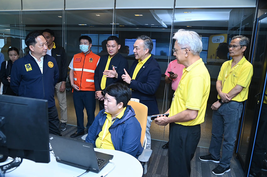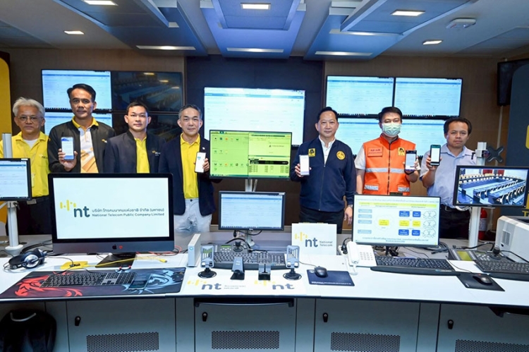 พันเอกสรรพชัยย์ หุวะนันทน์ กรรมการผู้จัดการใหญ่ บริษัท โทรคมนาคมแห่งชาติ จำกัด (มหาชน) หรือ NT และนายภาสกร บุญญลักษม์ อธิบดีกรมป้องกันและบรรเทาสาธารณภัย (ปภ.) พร้อมคณะ ร่วมทดสอบการแจ้งเตือนภัยด้วยระบบ Cell Broadcast สำหรับการแจ้งเตือนภัยสาธารณะผ่านเครือข่ายโทรศัพท์เคลื่อนที่ ณ ศูนย์จำลองทดสอบระบบ ชั้น 8 อาคารสำนักงานใหญ่ NT ถนนแจ้งวัฒนะ