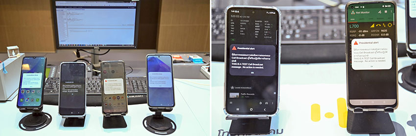 NT ร่วมกับกรมป้องกันและบรรเทาสาธารณภัย (ปภ.) เดินหน้าทดสอบระบบ Cell Broadcast สำหรับการแจ้งเตือนภัยสาธารณะผ่านเครือข่ายโทรศัพท์เคลื่อนที่ในพื้นที่เป้าหมาย โดยผลการทดสอบเป็นไปอย่างมีประสิทธิภาพ รองรับการส่งข้อความแจ้งเตือนไปยังโทรศัพท์มือถือของประชาชนในพื้นที่ได้อย่างรวดเร็ว ครอบคลุม และแม่นยำ