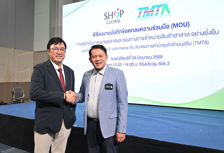ช้อป โกลบอล อี-คอมเมิร์ซ ผนึกกำลังสมาคมการค้าไทยมุสลิม (Thai Muslim Trade Association - TMTA) ลงนามบันทึกข้อตกลงความร่วมมือทางธุรกิจ ด้วยการขยายตลาดและช่องทางการจำหน่ายสินค้าฮาลาล หวังเสริมสร้างความแข็งแกร่งให้กับธุรกิจสินค้าฮาลาลของไทยทั้งในระดับประเทศและระดับสากล