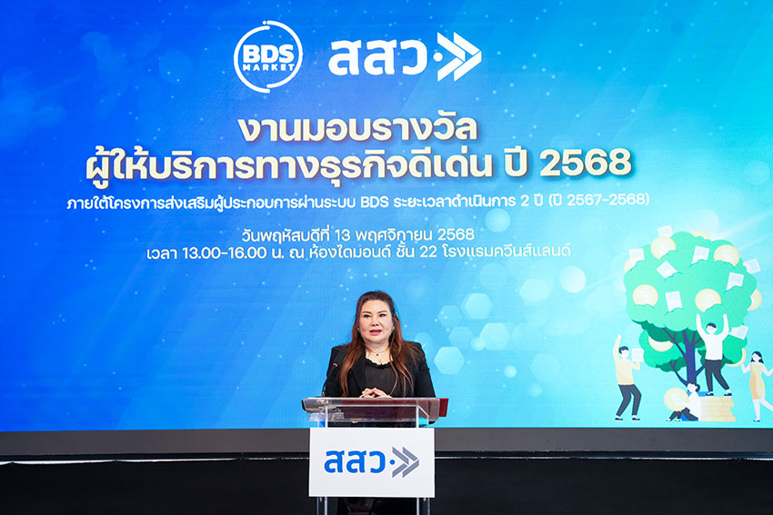 ดร.ปณิตา ชินวัตร รองผู้อำนวยการสำนักงานฯ รักษาการผู้อำนวยการ สสว. ประธานในงาน กล่าวถึงการดำเนินงานของโครงการ “ตลอดการดำเนินการ 2 ปี (2567-2568) ที่ สสว. และเครือข่าย BDSP ได้ร่วมกันพัฒนาระบบนิเวศทางธุรกิจ เพื่อยกระดับศักยภาพของผู้ประกอบการ SME ไทยให้เติบโตอย่างยั่งยืน เราได้ดำเนินงานโครงการส่งเสริมผู้ประกอบการผ่านระบบ BDS (ข้อมูล ณ 31 ต.ค. 2568) มีผู้ประกอบการเข้าร่วมระบบถึง 22,544 ราย โดยมีผู้ให้บริการ (BDSP) จำนวน 284 หน่วยงาน นำเสนอบริการรวม 1,102 บริการ และได้สนับสนุนงบประมาณเพื่อยกระดับ SME ไปแล้วกว่า 260 ล้านบาท โดยในปีนี้มีรางวัลผู้ให้บริการทางธุรกิจดีเด่น ปี 2568 ใน 4 ด้าน ได้แก่ รางวัลด้านการดำเนินงาน, รางวัลด้านสร้างเครือข่าย, รางวัลด้านการสร้างบริการที่ผู้ประกอบการสนใจ และรางวัลด้านการประสานงาน อีกทั้ง ยังได้เพิ่มรางวัลให้สำหรับหน่วยงานผู้ให้บริการที่โดดเด่นอีก 2 รางวัล คือ รางวัลน้องใหม่มาแรง : Rising Star Award และรางวัลขวัญใจมหาชน : People’s Choice Award”