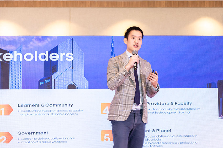 โดยภายในงานเริ่มด้วยการกล่าวถึงประวัติความเป็นมาและทิศทางของภาคธุรกิจการศึกษา จาก คุณศิรเดช โทณวณิก ทายาทรุ่นที่ 3 ของกลุ่มดุสิตธานี ปัจจุบันดำรงตำแหน่งกรรมการผู้จัดการ ASAI Hotels รองประธานฝ่ายพัฒนาธุรกิจและโครงการ Dusit International และรักษาการกรรมการผู้จัดการฝ่ายธุรกิจการศึกษา บริษัท ดุสิตธานี จำกัด (มหาชน) ซึ่งในภาคธุรกิจการศึกษาในเครือดุสิตธานี ประกอบด้วยวิทยาลัยดุสิตธานี โรงเรียนสอนการประกอบอาหาร เลอ กอร์ดอง เบลอ ดุสิต เป็นต้น โดยในส่วนของวิทยาลัยดุสิตธานีนั้นมีความร่วมมือทางวิชาการกับสถาบันการศึกษา และองค์กรในภาคธุรกิจต่าง ๆ ที่มีความเชี่ยวชาญและมีชื่อเสียงเป็นที่ยอมรับในระดับสากล ทั้งยังมีการดำเนินงานตามแผนการพัฒนาเพื่อสร้างความแข็งแกร่งและการเติบโตอย่างยั่งยืนและต่อเนื่อง อาทิเช่นการพัฒนาหลักสูตรอย่างต่อเนื่องเพื่อตอบสนองความต้องการของอุตสาหกรรม การปรับแผนการสอนให้เป็นระบบดิจิทัลก้าวทันสถานการณ์ การสร้างความสมดุลในหลักสูตรการเรียนการสอนเพื่อมุ่งเน้นในการสร้างความหลากหลาย การปรับปรุงสิ่งอำนวยความสะดวกและอาคารสถานที่ให้มีความทันสมัยอยู่เสมอ