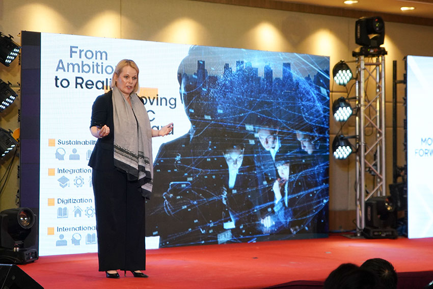 จากนั้นเป็นการเปิดตัวอธิการบดีคนใหม่ มิส ฟราวเกอะ เกอร์เบนส์ นักบริหารการศึกษาชาวดัตช์ ซึ่งได้แสดงวิสัยทัศน์และแนวทางในการต่อยอดเพื่อพัฒนา บวกกับประสบการณ์ของมิส เกอร์เบนส์ กว่า 25 ปี