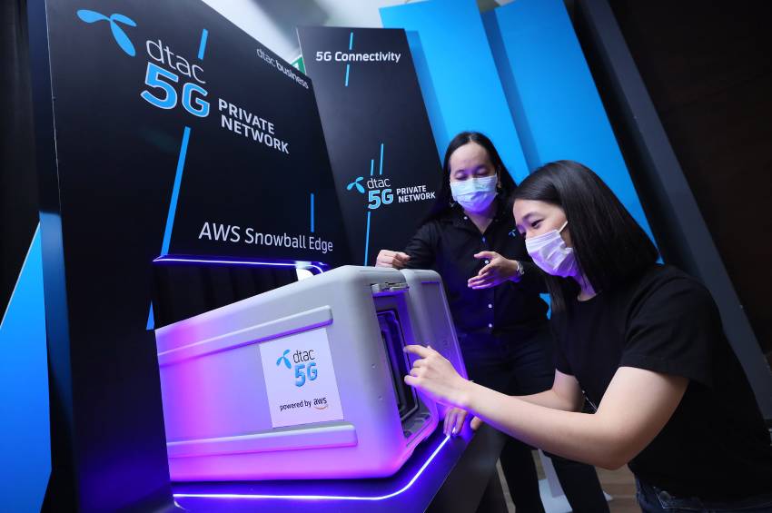 พร้อมยกระดับเครือข่ายพื้นฐานเฉพาะองค์กร ติดปีกอุปกรณ์ IoT และหุ่นยนต์ นำอุตสาหกรรมเติบโตสู่ศูนย์กลางการผลิต ชี้ต้องปรับตัวอย่างทันท่วงที ดีแทคชู 5G Private Network ความปลอดภัยสูงเมื่อผสานกับการประมวลผลเอดจ์ คอมพิวติ้ง สามารถออกแบบขนาดได้ตรงความต้องการ เพื่อใช้ประโยชน์สูงสุดจากเทคโนโลยี Massive IoT, Artificial Intelligence (AI), Machine Learning (ML), Augmented Reality (AR), Virtual Reality (VR), และการวิเคราะห์ข้อมูลแบบเรียลไทม์ ทั้งนี้ ดีแทคจัดสาธิตผ่านกล้องอัจฉริยะร่วมกับ เอดับบลิวเอส สโนวบอล เอดจ์ (AWS Showball Edge) อุปกรณ์ที่มาพร้อมสตอเรจและการประมวลผลบนคลาวด์คอมพิวติ้งจากเอดับบลิวเอส ซึ่งนอกจากจะสามารถรับส่งข้อมูลระหว่างสถานที่ต่างๆ กับคลาวด์ของเอดับบลิวเอสแล้ว อุปกรณ์ชิ้นนี้ยังสามารถทำการประมวลผลและรองรับเอดจ์คอมพิวติ้งได้อีกด้วย