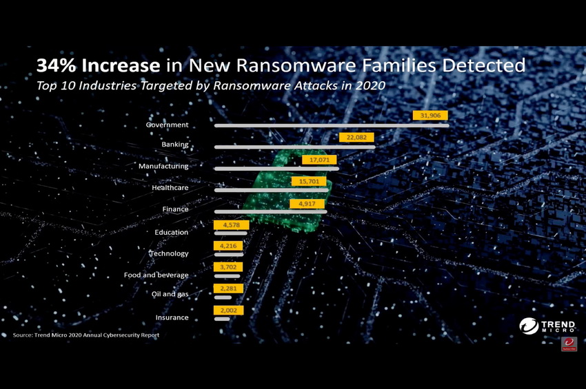 ในปี 2020 ที่ผ่านมา เทรนด์ไมโครได้ดำเนินการบล็อคภัยคุกคามที่เกิดขึ้นทั่วโลกเป็นจำนวน 62.6 พันล้านครั้ง หรือคิดเป็นตัวเลขประมาณ 119,000 ต่อนาที โดยข้อมูลที่ชี้ให้เห็นได้อย่างชัดเจนว่า