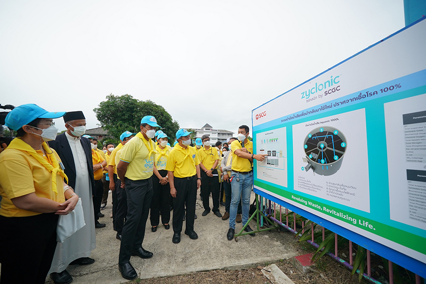 สำหรับโครงการดังกล่าว เอสซีจีได้สนับสนุน นวัตกรรมระบบบำบัดน้ำเสียไซโคลนิก (Zyclonic) พัฒนาโดย เอสซีจี เคมิคอลส์ หรือ เอสซีจีซี (SCGC) ซึ่งเป็นนวัตกรรมขจัดของเสีย ฆ่าเชื้อโรคในน้ำจากห้องน้ำและครัวเรือน ด้วยกระบวนการชีวภาพและเคมีไฟฟ้า ติดตั้งและบำรุงรักษาง่าย ซึ่งจะช่วยบำบัดน้ำเสียจนได้น้ำที่ปราศจากสีและกลิ่น สามารถนำกลับมาใช้ซ้ำได้ เช่น รดน้ำต้นไม้ ทำความสะอาดพื้นที่ส่วนกลาง เป็นต้น อีกทั้งยังช่วยลดการแพร่กระจายเชื้อโรค โดยจะติดตั้งนวัตกรรมดังกล่าว จำนวน 2 ชุด ซึ่งถังบำบัดน้ำเสีย 1 ชุด จะสามารถบำบัดน้ำเสียได้ถึง 1,000 ลิตรต่อวัน ตอบโจทย์การใช้งานที่ศูนย์พัฒนาเด็กเล็กก่อนวัยเรียนชุมชนกมาลุลอิสลาม นอกจากนี้ เอสซีจีพี ยังได้ร่วมสนับสนุน ถังดักไขมัน นวัตกรรมแบบดีไอวาย ที่เอสซีจีพีพัฒนาขึ้น โดยทำจากวัสดุที่หาซื้อได้ทั่วไป ประกอบง่าย ราคาประหยัด เพื่อใช้กรองเศษอาหารและช่วยแยกไขมันออกจากน้ำก่อนปล่อยน้ำทิ้งสู่ท่อระบายน้ำ ช่วยเสริมสร้างสุขอนามัยให้ชุมชนน่าอยู่มากยิ่งขึ้น”