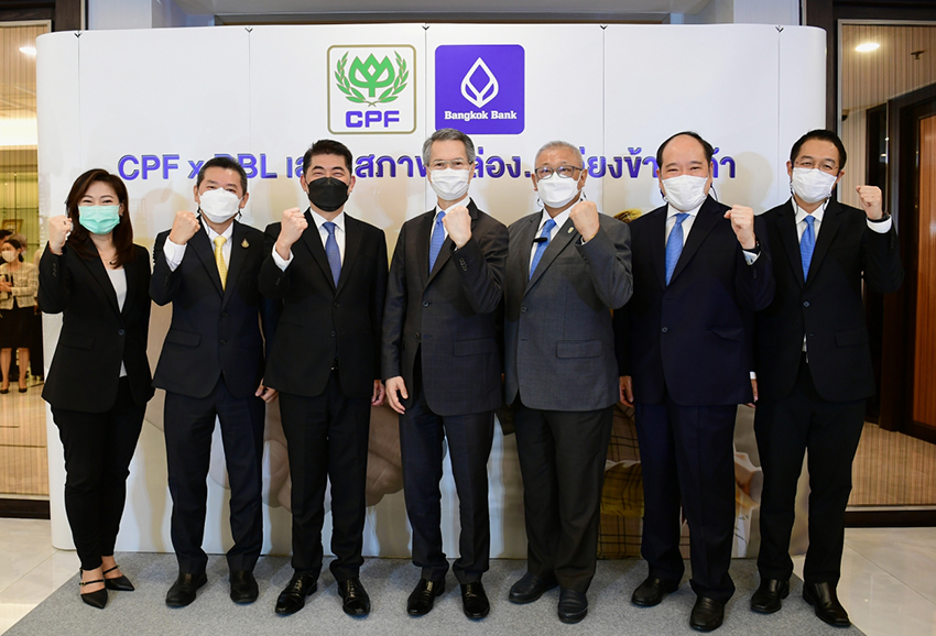 เปิดตัวความร่วมมือโครงการ "CPF x BBL เสริมสภาพคล่อง...เคียงข้างคู่ค้า" มอบสินเชื่อหมุนเวียนด้วยดอกเบี้ยพิเศษสำหรับคู่ค้าของซีพีเอฟ โดยมี นายประสิทธิ์ บุญดวงประเสริฐ ประธานคณะผู้บริหาร ซีพีเอฟ และ นายจรัมพร โชติกเสถียร กรรมการบริหาร ธนาคารกรุงเทพ ให้เกียรติเป็นประธานในงาน ณ ซี.พี.ทาวเวอร์ สีลม