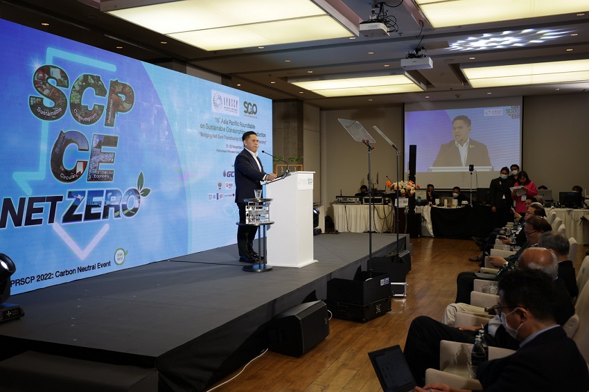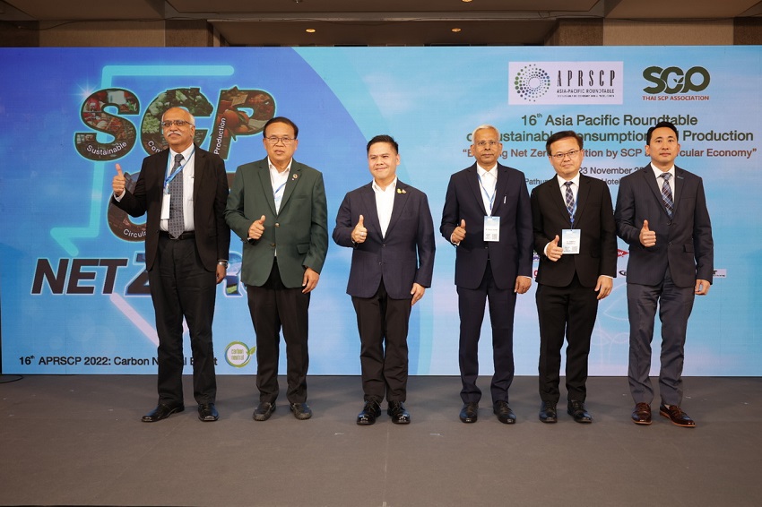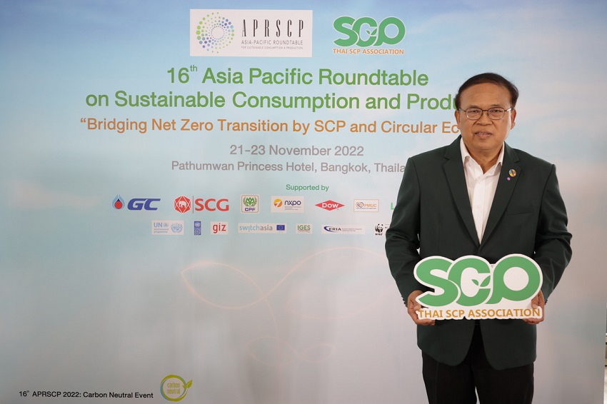 สมาคมส่งเสริมการผลิตและบริโภคที่ยั่งยืน (ประเทศไทย) หรือ SCP Association (Thailand) ร่วมกับ Asia Pacific Roundtable for Sustainable Consumption and Production (APRSCP) จัดงานประชุมวิชาการนานาชาติ “16th Asia Pacific Roundtable on Sustainable Consumption and Production: Bridging Net Zero Transition by SCP and Circular Economy” ระหว่างวันที่ 21-23 พฤศจิกายน 2565 ณ โรงแรมปทุมวันปริ๊นเซส กรุงเทพ เพื่อเป็นเวทีสำหรับการแลกเปลี่ยนประสบการณ์ องค์ความรู้ บทเรียน การศึกษาวิจัย และการส่งเสริมแนวปฏิบัติที่ดีในการดำเนินงานด้านการผลิตและการบริโภคที่ยั่งยืน เศรษฐกิจหมุนเวียน รวมถึงความร่วมมือระหว่างประเทศในด้านการเสริมสร้างศักยภาพ การเข้าถึงเทคโนโลยี นวัตกรรม และแหล่งเงินทุน เพื่อยกระดับความมุ่งมั่นในการลดก๊าซเรือนกระจกและปรับตัวเพื่อเปลี่ยนผ่านให้บรรลุเป้าหมายการปล่อยก๊าซเรือนกระจกสุทธิเป็นศูนย์หรือ Net Zero GHG Emission ของประเทศในภูมิภาคเอเชียแปซิฟิก