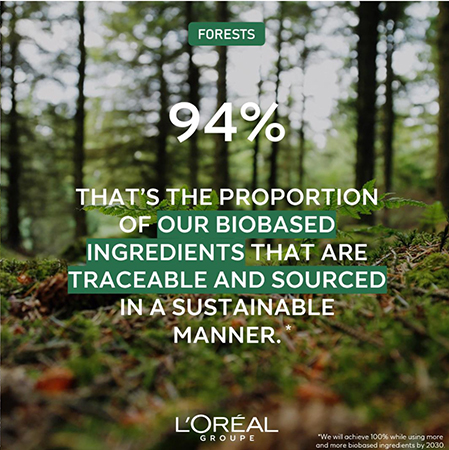 ลอรีอัล กรุ๊ป ได้ตั้งเป้าหมายเพื่อความยั่งยืนสำหรับปี 2573 อันเป็นส่วนหนึ่งของโปรแกรม L’Oréal for the Future โดยครอบคลุมแกนการดำเนินงานในสามส่วน ได้แก่การเปลี่ยนแปลงตนเอง สร้างพลังให้กับระบบนิเวศน์ทางธุรกิจของเรา และร่วมเป็นส่วนหนึ่งในการแก้ไขปัญหาความท้าทายที่โลกต้องเผชิญ