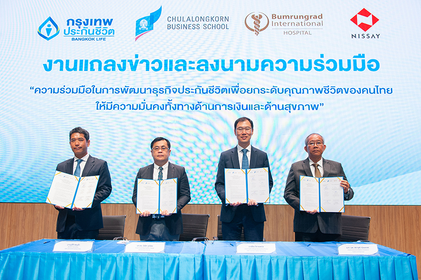 กรุงเทพประกันชีวิต ร่วมลงนามบันทึกข้อตกลงความร่วมมือด้านการส่งเสริมการให้ความรู้ทางการเงิน กับ 3 องค์กรพันธมิตรหลัก คณะพาณิชยศาสตร์และการบัญชี จุฬาลงกรณ์มหาวิทยาลัย โรงพยาบาลบำรุงราษฎร์ และ บริษัท นิปปอนไลฟ์ อินชัวรันส์ เพื่อยกระดับคุณภาพชีวิตของคนไทยให้มีความมั่นคงทั้งทางด้านการเงินและสุขภาพ โดยความร่วมมือแรกดำเนินการผ่านโครงการ Grand Open House Bangkok Life Smart Leader ในการพัฒนาบุคลากรคนรุ่นใหม่ในเส้นทางอาชีพตัวแทนประกันชีวิตและที่ปรึกษาทางการเงิน