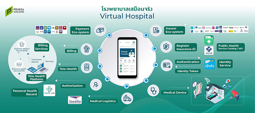 - การเชื่อมโยงแบบ Anywhere Anytime ด้วยแอปพลิเคชันวิมุตที่ให้บริการการแพทย์ทางไกล การจัดส่งยาและเวชภัณฑ์ทางไปรษณีย์ การพัฒนาระบบดิจิทัลเฮลท์แคร์เพื่อการส่งเสริมสุขภาพเชิงป้องกัน รวมไปถึงแผนการในอนาคตที่พัฒนาโรงพยาบาลมุ่งสู่โรงพยาบาลเสมือนจริง (Virtual Hospital) ดูแลผู้ป่วยติดเตียงที่บ้านจากเครื่องติดตามการทำงานของร่างกายหากมีเหตุฉุกเฉินหรือผิดปกติทีมแพทย์สามารถเข้าช่วยเหลือได้ทันท่วงที บริการเจาะเลือดไม่ต้องมาโรงพยาบาล และความร่วมมือกับพันธมิตรอื่น ๆ ที่จะช่วยยกระดับการเข้าถึงการบริการด้านสุขภาพผ่านเทคโนโลยีดิจิทัลได้ง่ายขึ้นด้วย