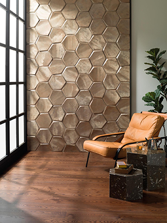 หากคุณเป็นคนที่มีรสนิยมความชอบการตกแต่งในสไตล์รัสติค สไตล์ลอฟต์ หรือชื่นชอบลวดลายหินอ่อน กระเบื้องสไตล์ประกายเมทัลลิค (Go Glitzy with Metallics) จะตอบโจทย์ความเข้มขลังให้ดูหรูมากขึ้น จนเกิดเป็นเทรนด์ที่ผู้ผลิตต่างรังสรรค์ลวดลายออกมาให้เลือกหลายสไตล์ โดยที่ยังไม่ทิ้งกลิ่นอายดั้งเดิม