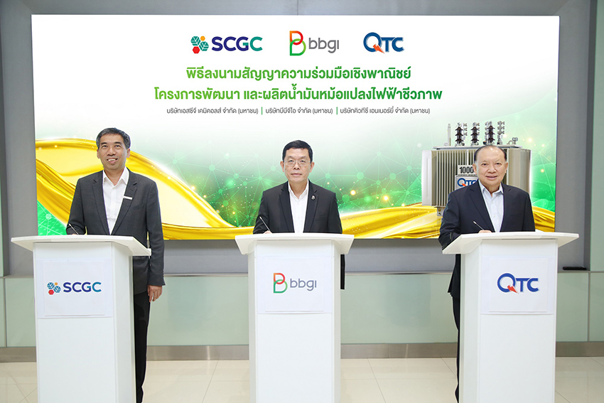 บริษัท บีบีจีไอ ไบโอดีเซล จำกัด บริษัท เอสซีจี เคมิคอลส์ จำกัด (มหาชน) หรือ SCGC และ บริษัท คิวทีซี เอนเนอร์ยี่ จำกัด (มหาชน) ลงนามสัญญาความร่วมมือเชิงพาณิชย์ในโครงการพัฒนาและผลิตน้ำมันหม้อแปลงไฟฟ้าชีวภาพ (Bio Transformer Oil) เพื่อทดลองผลิตครั้งแรกของประเทศไทยและพร้อมต่อยอดสู่การผลิตเชิงพาณิชย์ ตอบรับนโยบายเศรษฐกิจ BCG (Bio-Circular-Green Economy)