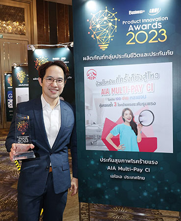 เอไอเอ ประเทศไทย โดย นายเอกรัตน์ ฐิติมั่น ประธานเจ้าหน้าที่ฝ่ายการตลาด รับรางวัลอันทรงเกียรติ Business+ Product Innovation Awards 2023 ในสาขาผลิตภัณฑ์กลุ่มประกันชีวิตและประกันภัย จากความสำเร็จและนวัตกรรมที่ตอบโจทย์ผู้บริโภคอย่างยอดเยี่ยมของ “ผลิตภัณฑ์ประกันโรคร้ายแรง AIA Multi-Pay CI” จัดโดยนิตยสาร Business+ ร่วมกับวิทยาลัยการจัดการมหาวิทยาลัยมหิดล ซึ่งมอบให้แก่สุดยอดสินค้าและบริการที่มีนวัตกรรมแห่งปี 2566 โดย AIA Multi-Pay CI นับเป็นปรากฏการณ์ใหม่แห่งวงการประกันโรคร้ายแรง พร้อมเป็นการตอกย้ำความเป็นผู้นำประกันชีวิตและสุขภาพอันดับ 1 ของประเทศ* ซึ่งผลิตภัณฑ์ดังกล่าวถูกออกแบบมาจากความต้องการของลูกค้าและสถิติการเคลมด้วยโรคร้ายแรง เพื่อมอบความอุ่นใจให้กับลูกค้าในยามที่ต้องเผชิญกับเหตุการณ์ไม่คาดฝัน พร้อมอยู่เคียงข้างและดูแลลูกค้าในทุกสถานการณ์ เพื่อส่งเสริมให้คนไทยมีสุขภาพและชีวิตที่ดีขึ้นตามคำมั่นสัญญา ‘Healthier, Longer, Better Lives’ โดยได้รับเกียรติจาก ฯพณฯ นุรักษ์ มาประณีต เป็นประธานมอบรางวัล ณ โรงแรมเรเนซองส์ กรุงเทพฯ ราชประสงค์