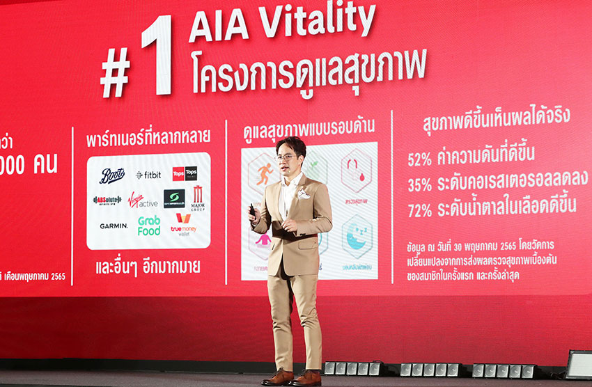 - เอไอเอ ไวทัลลิตี้ โครงการสุขภาพที่ใหญ่ที่สุดในประเทศไทย[1] เพื่อมุ่งสร้างแรงจูงใจให้ลูกค้าปรับเปลี่ยนพฤติกรรมการดำเนินชีวิต ให้หันมาใส่ใจสุขภาพมากขึ้น ออกกำลังกายอย่างสม่ำเสมอ รับประทานอาหารที่มีประโยชน์ และพักผ่อนให้เพียงพอ พร้อมสะสมคะแนนเอไอเอ ไวทัลลิตี้ เพื่อปรับสถานะให้สูงขึ้น และยังได้รับสิทธิประโยชน์หลากหลายจากพันธมิตรชั้นนำ อีกทั้งมีสิทธิรับเงินคืนค่าการประกันภัยตามสถานะเอไอเอ ไวทัลลิตี้[3] ตลอดทั้งโครงการ