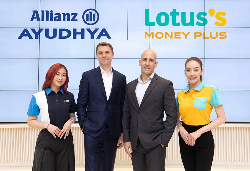 โลตัส มันนี่ พลัส โดย มร.นิค สมาร์ท กรรมการผู้จัดการใหญ่ และ บมจ. อลิอันซ์ อยุธยา ประกันภัย โดย มร.ลาร์ส ไฮบุทสกี้ กรรมการผู้จัดการใหญ่ ประกาศความร่วมมือในธุรกิจประกันภัย เพิ่มทางเลือกให้กับลูกค้าผู้ต้องการซื้อประกันภัยรถยนต์ผ่านเคาน์เตอร์บริการของโลตัส มันนี่ พลัส กว่า 200 สาขา ณ ห้างโลตัสทั่วประเทศ