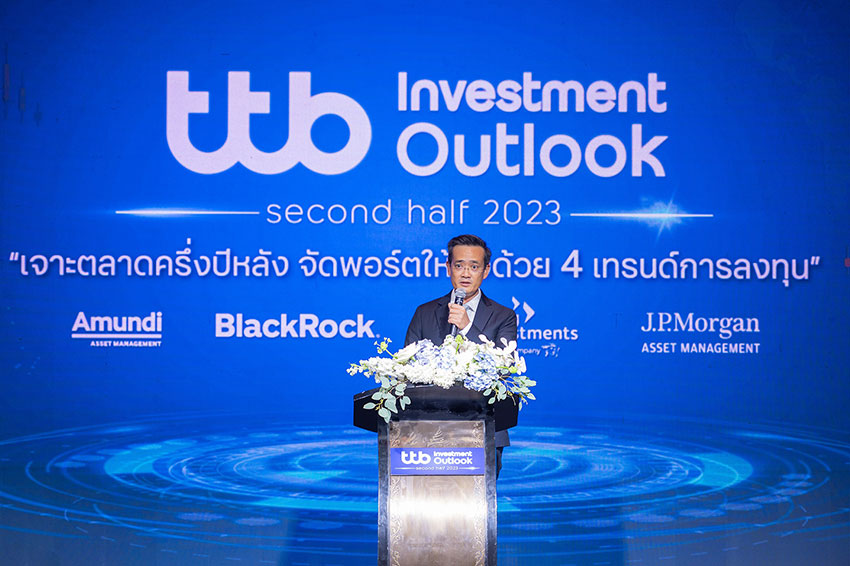 เมื่อเร็ว ๆ นี้ ทีเอ็มบีธนชาต หรือ ทีทีบี ยกกองทัพผู้เชี่ยวชาญด้านการลงทุนจากทีทีบีและพันธมิตร มาเปิดมุมมองและทิศทางการลงทุนตลาดครึ่งปีหลัง ผ่านสัมมนา “ttb investment outlook second half 2023” เสริมแกร่งพอร์ตด้วย 4 เทรนด์การลงทุนรับครึ่งปีหลัง พร้อมอัปเดตเทรนด์ ChatGPT เทคโนโลยีใหม่เปลี่ยนโลกให้กับนักลงทุนที่สนใจ เพื่อสร้างโอกาสในการรับผลตอบแทนที่ดีจากการลงทุน นำไปสู่การมีชีวิตทางการเงินที่ดีขึ้นทั้งในวันนี้และอนาคต
