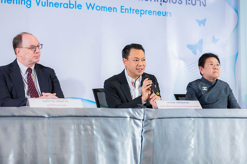 ดร.รักษ์ วรกิจโภคาทร กรรมการผู้จัดการ ธนาคารเพื่อการส่งออกและนำเข้าแห่งประเทศไทย (EXIM BANK) นายริชาร์ด เบิร์นฮาร์ด กรรมการอำนวยการ มูลนิธิคีนันแห่งเอเซีย และนางสาวโศรยา ฤทธิอร่าม ผู้อำนวยการ ทัณฑสถานหญิงกลาง ร่วมแถลงผลสำเร็จ “โครงการเสริมสร้างความเข้มแข็งของผู้ประกอบการสตรีกลุ่มเปราะบาง” ซึ่งเป็นความร่วมมือระหว่าง 3 หน่วยงานในการจัดกิจกรรมส่งเสริมความรู้และพัฒนาศักยภาพผู้ประกอบการสตรีกลุ่มเปราะบางให้สามารถประกอบธุรกิจ โดยเรียนรู้วิธีพัฒนาผลิตภัณฑ์เพื่อสร้างความแตกต่างและโดดเด่น การทำตลาดผ่านสื่อดิจิทัล และการขายสินค้าออนไลน์ เพื่อจะได้เข้าถึงโอกาสใหม่ ๆ ทางธุรกิจและขยายธุรกิจในโลกการค้าไร้พรมแดนได้ นำไปสู่การพึ่งพาตนเอง การสร้างรายได้จุนเจือครอบครัว และการสร้างความเข้มแข็งของชุมชนและสังคม