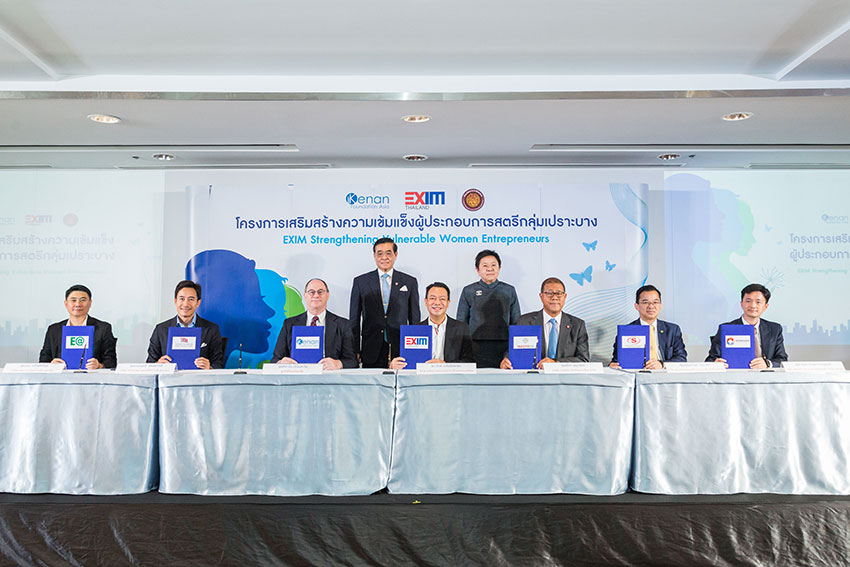 EXIM BANK จับมือมูลนิธิคีนันแห่งเอเซียและทัณฑสถานหญิงกลาง พัฒนาผู้ประกอบการสตรีกลุ่มเปราะบางสู่ธุรกิจส่งออกผ่านช่องทางการค้าออนไลน์ พร้อมจับมือลูกค้าธนาคารที่เป็นผู้ประกอบการรายใหญ่ ประกอบด้วย บริษัท เวสท์เทค เอ็กซ์โพเนนเชียล จำกัด บริษัท ซุปเปอร์ เอนเนอร์ยี คอร์เปอเรชั่น จำกัด (มหาชน) บริษัท เสริมสร้าง พาวเวอร์ คอร์ปอเรชั่น จำกัด (มหาชน) บริษัท โทรีเซนไทย เอเยนต์ซีส์ จำกัด (มหาชน) และบริษัท พลังงานบริสุทธิ์ จำกัด (มหาชน) สนับสนุนสินค้าจากสตรีกลุ่มเปราะบาง เพื่อสร้างรายได้เลี้ยงตนเองและครอบครัวให้มีคุณภาพชีวิตที่ดีขึ้น ตลอดจนเสริมสร้างความเข้มแข็งของชุมชนและสังคมโดยรวม สานพลังต่อยอดการพัฒนาอย่างยั่งยืนของประเทศไทยและโลกโดยรวม