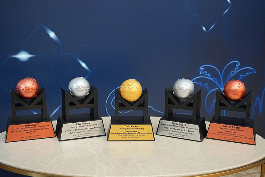 เอสซีจี คว้า 5 รางวัล จากเวที Marketing Award of Thailand 2023 (MAT Award 2023) จัดโดยสมาคมการตลาดแห่งประเทศไทย โดดเด่นด้วยแคมเปญนวัตกรรมเพื่อลูกค้าสายกรีนตามเมกะเทรนด์โลก รางวัล Gold จากผลงาน “Wake Up Waste” แพลตฟอร์มและรถบีบอัดที่ช่วยให้การเก็บรวบรวมขยะตั้งแต่ต้นทาง มีคุณภาพ และการขนส่งไปรีไซเคิลอย่างมีประสิทธิภาพสูงสุด โดยเอสซีจี เคมิคอลส์ หรือ SCGC และรางวัล Sliver จากผลงาน “บ้านปะการัง รักษ์ทะเล” ฟื้นฟูทรัพยากรทางทะเลด้วยบ้านปะการัง จากนวัตกรรม CPAC 3D Printing Solution โดย CPAC Green Solution ในธุรกิจซีเมนต์และผลิตภัณฑ์ก่อสร้าง เอสซีจี ซึ่งเป็น 2 รางวัล จากประเภท “แคมเปญการตลาดที่มีความเป็นเลิศด้านความยั่งยืน (Sustainable Marketing)”