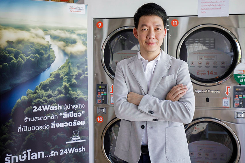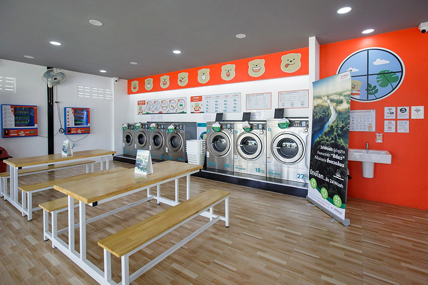 ร้านสะดวกซักแบรนด์ ทเวนตี้โฟร์ วอช (24Wash) ธุรกิจที่กำลังเป็นที่จับตาและได้รับความสนใจ หลังดำเนินกิจการเข้าสู่ปีที่ 6 แล้ว จึงสามารถเรียกได้ว่าเป็นร้านรักษ์โลก เป็นมิตรต่อสิ่งแวดล้อม เพราะทุก ๆ การซักผ้า อบผ้า จะช่วยเพิ่มพื้นที่สีเขียว ซึ่งเป็นการยกระดับร้านสะดวกซักเจ้าแรกของไทย ภายใต้ไอเดีย Green Laundromat Concept เน้นหลัก 3R คือ Reduce, Reuse และ Recycle เพื่อวิถีชีวิตที่ยั่งยืน และยังได้จัดโครงการ 24Wash Care & Share ไปแล้วมี 2 แคมเปญ คือ 1. ยิ่งแบ่งปัน ยิ่งสุขใจ เป็นการแบ่งปันเสื้อผ้าคุณภาพดี เพื่อแปรเปลี่ยนเป็นทุนการศึกษาแก่เด็กๆ 2. ยิ่งซัก ยิ่งให้ บริจาค 1 บาท ต่อการซักผ้า การอบผ้าที่ร้าน 24Wash เพื่อเพิ่มโอกาสทางการศึกษาให้กับน้องๆ 3 จังหวัดชายแดนใต้ และในปี 2567 จะจัดเป็นครั้งที่ 2 หวังสนับสนุนการสร้างโอกาส และสร้างอาชีพในชุมชนอีกด้วย