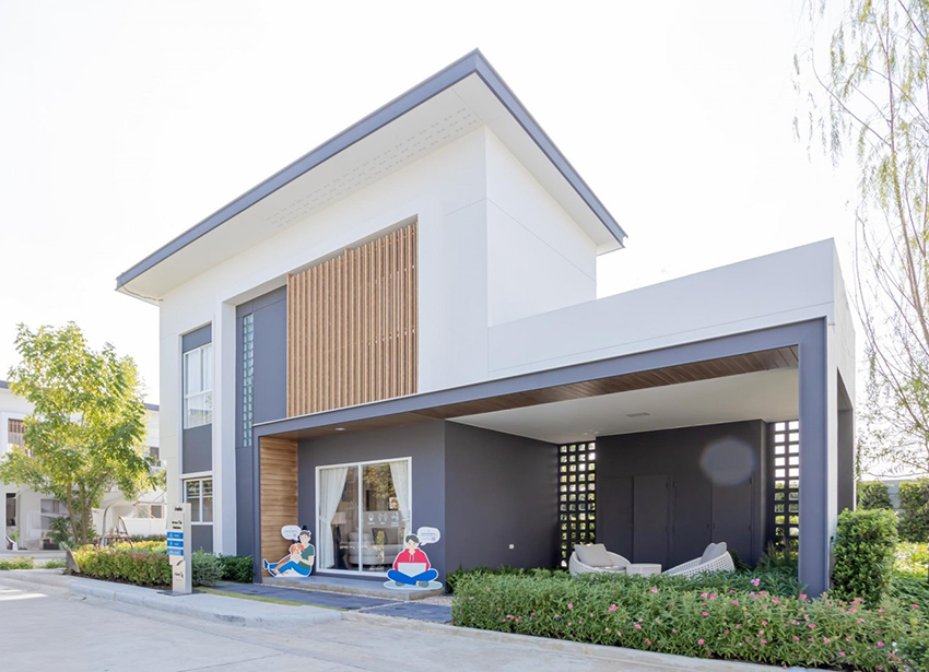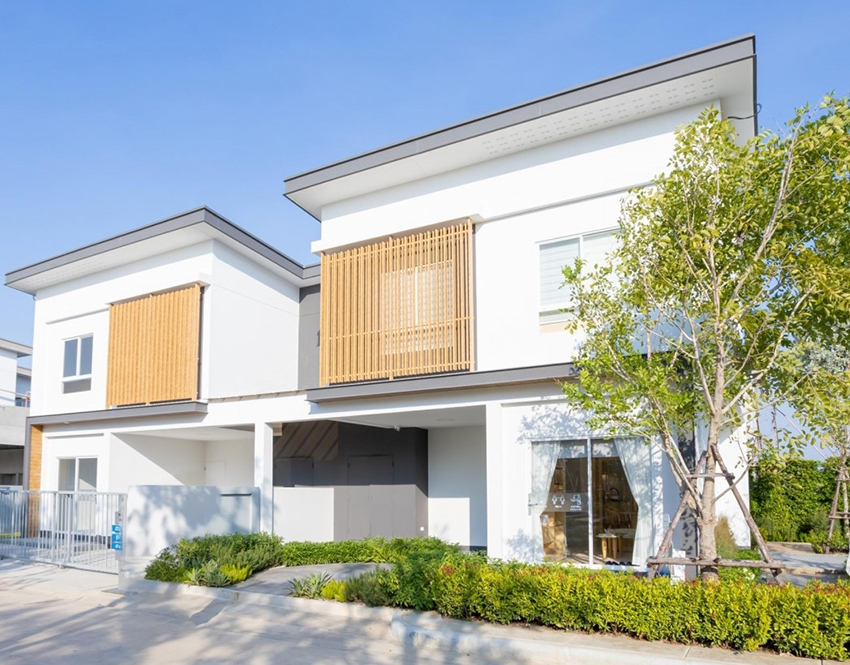 2.บ้านแฝด ที่ดินเริ่มต้น 35.1 ตร.ว. พื้นที่ใช้สอย 162 ตร.ม. ประกอบด้วย 2 ห้องนอน 3 ห้องน้ำ 1 ห้องพักผ่อน 1 ห้องอเนกประสงค์ ที่จอดรถ 2 คัน และ Façade ด้านหน้าตกแต่งระแนงไม้ ที่ให้ความรู้สึกอบอุ่น ช่วยถ่ายเทระบายอากาศ พร้อมบดบังสายตาเพิ่มความสวยงามและเป็นส่วนตัวให้กับผู้พักอาศัย ราคาเริ่มต้น 4 ล้านเศษ*