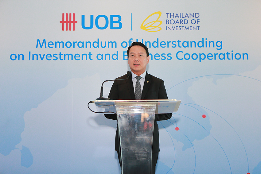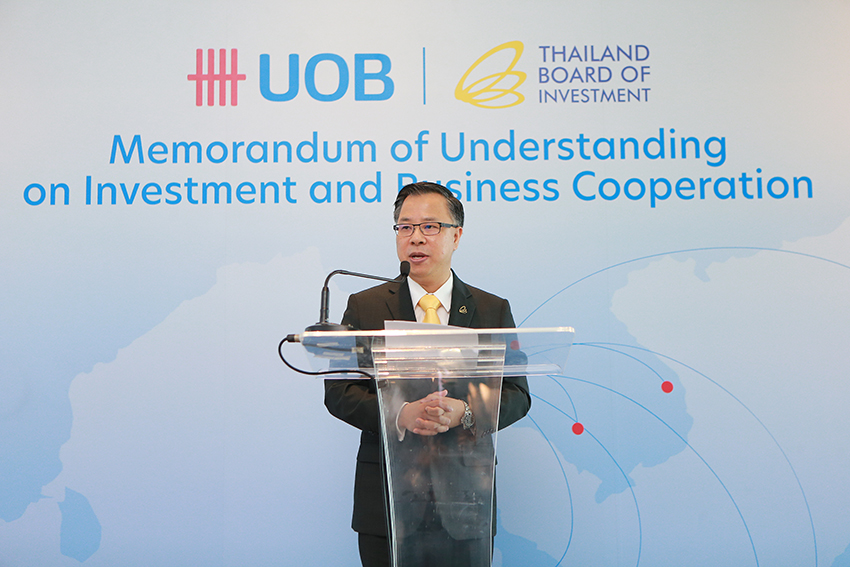 สำนักงานคณะกรรมการส่งเสริมการลงทุน (บีโอไอ) ร่วมลงนามบันทึกข้อตกลง ความร่วมมือกับธนาคารยูโอบี ประเทศไทย ประกาศความร่วมมืออย่างเป็นทางการ ผนึกกำลังสร้างโอกาสทางธุรกิจ ชักจูงการลงทุนในไทยและอาเซียน