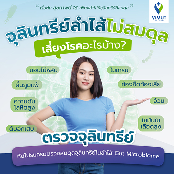 นายแพทย์กุลเทพ รัตนโกวิท แพทย์ผู้ชำนาญการโรคระบบทางเดินอาหารและตับระบบประสาทและการเคลื่อนไหวทางเดินอาหาร หัวหน้าศูนย์ทางเดินอาหารและตับ กล่าวว่า “หลายคนอาจไม่ทราบว่าการดูแลสมดุลจุลินทรีย์ในลำไส้เป็นอีกหนึ่งหัวใจสำคัญของการทำงานที่เป็นปกติของระบบต่าง ๆ ในร่างกาย หากจุลินทรีย์ในลำไส้เกิดภาวะไม่สมดุล เราอาจเผชิญกับอาการเจ็บป่วยต่างๆ อาทิ ลำไส้แปรปรวน ท้องผูก ท้องเสียเป็นประจำ ระบบการเผาผลาญไม่ดี อาจทำให้เสี่ยงเป็นโรคอ้วนได้ง่าย ๆหรือมีปัญหาเรื่องระบบภูมิคุ้มกันโดยไม่ทราบสาเหตุ Gut Microbiome Test ที่ รพ.วิมุต ช่วยตรวจจุลินทรีย์ในลำไส้ผ่านการตรวจอุจจาระ เพื่อให้แพทย์สามารถวิเคราะห์ความสมดุล (Balance) และความหลากหลาย (Diversity) ของจุลินทรีย์ในลำไส้ และวางแผนการปรับสมดุลในลำไส้ ซึ่งรวมถึงการปรับการรับประทานอาหารและปรับเปลี่ยนไลฟ์สไตล์ให้คนไข้แต่ละคนได้อย่างตรงจุด นอกจากนี้ อาจแนะนำให้รับประทานโพรไบโอติกส์ที่มีสูตรและสายพันธุ์จุลินทรีย์ที่เหมาะกับสุขภาพลำไส้ตามผลการตรวจจุลินทรีย์เฉพาะบุคคล เพื่อให้ได้ประโยชน์สูงสุดจากโพรไบโอติกส์”