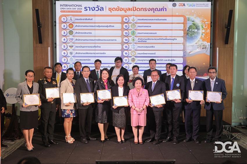 สถาบันนวัตกรรมและธรรมาภิบาลข้อมูล (Data Innovation and Governance Institute : DIGI) ภายใต้ สำนักงานพัฒนารัฐบาลดิจิทัล (องค์การมหาชน) หรือ DGA จัดงาน วันข้อมูลเปิดนานาชาติ ประจำปี 2567 (International Open Data Day 2024) ภายใต้หัวข้อ “Data-Driven for Sustainability: การขับเคลื่อนด้วยข้อมูลเพื่อการพัฒนาที่ยั่งยืน” เพื่อส่งเสริมการใช้งานระบบข้อมูลแบบเปิด (Open Data) เป็นกุญแจสำคัญในการเดินหน้าประเทศสู่การเป็นรัฐบาลเปิดได้อย่างยั่งยืน โดยได้รับเกียรติจาก ดร.พวงเพ็ชร ชุนละเอียด รัฐมนตรีประจำสำนักนายกรัฐมนตรี เป็นประธานในพิธีพร้อมมอบรางวัลให้แก่หน่วยงานที่ได้รับรางวัลทั้ง 45 หน่วยงาน พร้อมด้วย นายฉัตรชัย ธนาฤดี คณะกรรมการสำนักงานพัฒนารัฐบาลดิจิทัล โดยมี นางไอรดา เหลืองวิไล รองผู้อำนวยการ รักษาการแทนผู้อำนวยการสำนักงานพัฒนารัฐบาลดิจิทัล กล่าวรายงานภาพรวมข้อมูลเปิดของรัฐบาลดิจิทัลและกล่าวให้การต้อนรับแขกผู้มีเกียรติ ทั้งกูรูที่คร่ำหวอดในวงการ Open Data ผู้บริหาร และเจ้าหน้าที่จากภาครัฐ ภาคเอกชน และประชาชนที่ให้ความสนใจเข้าร่วมงานเป็นจำนวนมาก เมื่อวันที่ 5 มีนาคม 2567 ณ สถาบันเพื่อการยุติธรรมแห่งประเทศไทย (องค์การมหาชน)