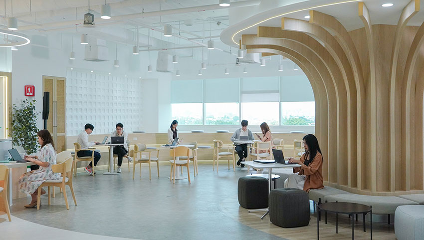 - เพิ่มความสุขในการทำงาน โดยจัดให้มี Co-working Space พื้นที่ส่วนกลางในบรรยากาศสบาย ๆ สำหรับให้พนักงานได้นัดพูดคุยเรื่องงาน พบปะสังสรรค์ หรือพักผ่อนหย่อนใจ โดยมีกิจกรรมให้เลือกมากมาย เช่น เล่นเกม ดูหนัง นวดผ่อนคลาย อ่านหนังสือ เป็นต้น