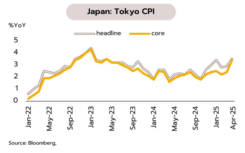 เศรษฐกิจญี่ปุ่นกำลังเผชิญแรงกดดันจากนโยบายการขึ้นภาษีศุลกากรของสหรัฐฯ ที่คาดนำไปสู่การชะลอตัวลงของเศรษฐกิจและการค้าโลกอย่างมีนัยสำคัญและกระทบกับภาคการผลิตและส่งออกของญี่ปุ่น แม้การอ่อนค่าของเงินเยนและการเร่งนำเข้าสินค้าก่อนปรับภาษี (Frontloading) จะหนุนการส่งออกในไตรมาสแรก แต่การแข่งขันจากสินค้าจีนในตลาดโลกที่รุนแรงขึ้น อุปสงค์จากต่างประเทศที่ชะลอตัว รวมถึงความเสี่ยงจากนโยบายภาษีตอบโต้ (Reciprocal tariff) โดยเฉพาะหากอัตราภาษีกลับไปอยู่ที่ระดับ 24% ตามที่ทรัมป์ประกาศไว้รอบแรก หรือการเจรจาล้มเหลว อาจส่งผลกระทบต่อเศรษฐกิจญี่ปุ่นในระยะต่อไป ด้วยเหตุนี้ วิจัยกรุงศรีวิจัยจึงคาดว่า BOJ จะยังคงดอกเบี้ยนโยบายไว้ที่ 0.5% ต่อเนื่อง ก่อนพิจารณาปรับขึ้นในช่วงครึ่งหลังของปี