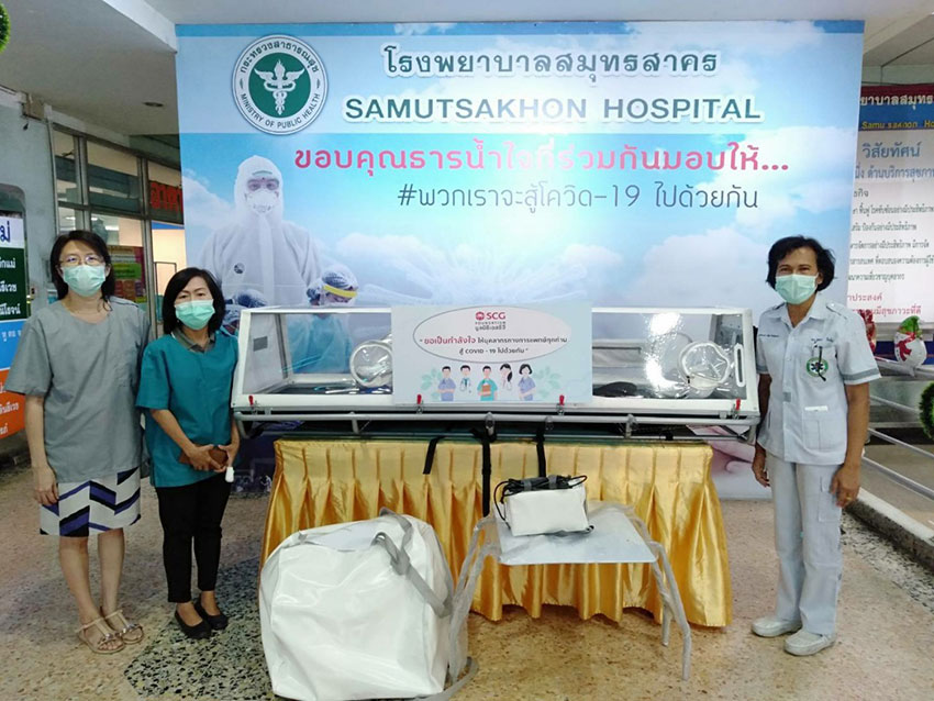 มูลนิธิเอสซีจียังได้กระจายความช่วยเหลือไปยังพื้นที่ที่ขาดแคลนอุปกรณ์ทางการแพทย์และมีการแพร่ระบาดของเชื้อโควิด-19 สูง ใน 6 จังหวัด 11 โรงพยาบาลและสภากาชาดไทย ได้แก่ จังหวัดสมุทรสาคร นครปฐม ระยอง ตาก แพร่ และกรุงเทพฯ รวมมูลค่ากว่า 6,000,000 บาท โดยส่งมอบนวัตกรรมป้องกันการแพร่กระจายของเชื้อโควิด-19 เพื่อเป็นเกราะป้องกันให้บุคลากรทางการแพทย์ปฏิบัติหน้าที่ได้อย่างรวดเร็วและปลอดภัย เช่น ห้องน้ำภายในศูนย์ห่วงใยคนสาคร ห้องแยกป้องกันเชื้อความดันบวก-ลบแบบเคลื่อนที่ (Positive/Negative Pressure Isolation Room) สำหรับปฏิบัติการในห้องฉุกเฉินและห้องไอซียู เครื่อง Thermo Scan สำหรับอาสาสมัครสาธารณสุขประจำหมู่บ้าน (อสม.) ชุด PPE หน้ากาก N95 ฯลฯ และทุนช่วยเหลือชาวเมียนมาผ่านจังหวัดสมุทรสาคร เพื่อร่วมเป็นส่วนหนึ่งที่ #ช่วยกันแคร์ดูแลกัน ให้พวกเราสามารถก้าวผ่านวิกฤตนี้ไปได้อีกครั้งในสถานการณ์การแพร่ระบาดที่มีความเสี่ยงสูงนี้