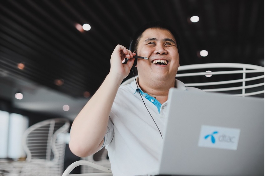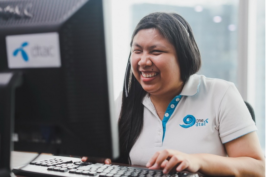 อำพล อินทรเปือย อีกหนึ่งในพนักงานคอลล์เซ็นเตอร์ของดีแทคที่เริ่มงานมาตั้งแต่ปี 2558 เล่าว่า จากการเป็นลูกค้าแฮปปี้ดีพร้อมท์สมัยยังเป็นเด็ก เมื่อจบมาได้เข้ามาทำงานที่ดีแทคเป็นที่แรกและอยากทำงานที่นี่เป็นที่สุดท้าย ผมมีความสุขกับที่นี่มาก ดีแทคให้ความเท่าเทียมเงินเดือน สวัสดิการ โอกาสการทำงานที่ใม่เหลื่อมล้ำ วัฒนธรรมการทำงานที่ดี ให้สลับวันหยุดการทำงานสอดคล้องกับไลฟ์สไตล์ ได้ทำงานที่อัพสกิลเพิ่ม เรียนรู้สิ่งใหม่ “ชื่นชมดีแทคที่ให้ลองก่อน ไม่ปิดกั้น แน่นอนว่าเมื่อเราได้ลองก็จะได้ผลงานใหม่ๆ จากผู้พิการ”